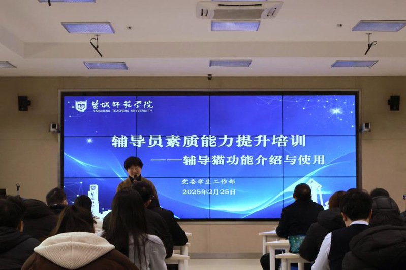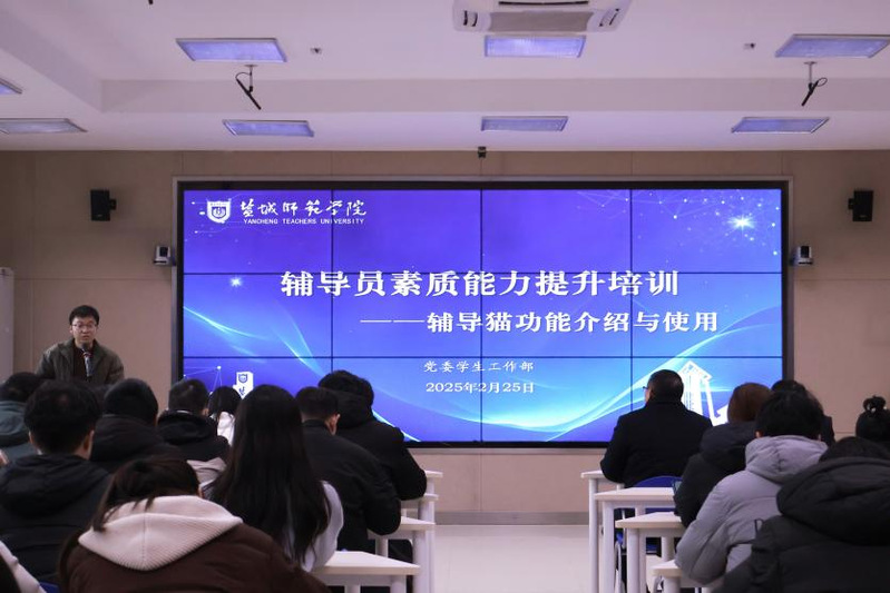 2月25日下午,学生工作处在新长校区公共教学楼智慧教室A102开展2025年辅导员素质能力提升专题培训。本次培训邀请江苏金智教育信息股份有限公司“辅导猫”客户经理王蒙蒙主讲辅导猫功能介绍与使用,学生工作处工作人员及二级学院辅导员百余人参加培训。