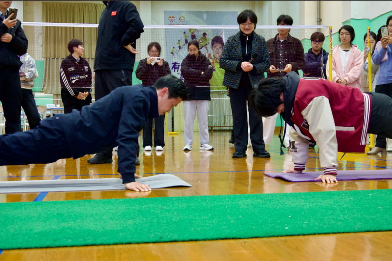 活动伊始,张宏如与学生代表以球台为茶台、以球拍为媒介,切磋球技、引航恳谈,于交流间隙示范俯卧撑锻炼,身体力行传递运动理念。在随后座谈环节,他结合自身运动经历与对体育教育的深邃思考,从为什么运动、如何运动、运动何为三个维度与现场学生进行深入交流,强调体育不仅是强身之术,更是五育并举中“立德树人”的重要载体,并就如何以体育精神赋能青年成长提出三点建议:一是树立终身运动理念,打破体育工具化认知局限,积极培养体育兴趣爱好,在习惯养成中筑牢健康底色;二是汲取体育育人力量,增强身心抗压韧性,提升自我管理能力,在意志淬炼中涵养阳光心态;三是掌握日常锻炼方法,摆脱场地环境依赖,统筹学业与健康管理,在学练并进中实现全面健康成长。